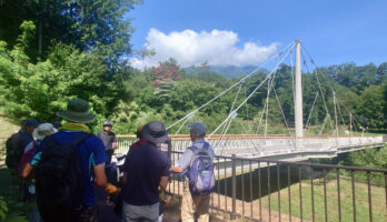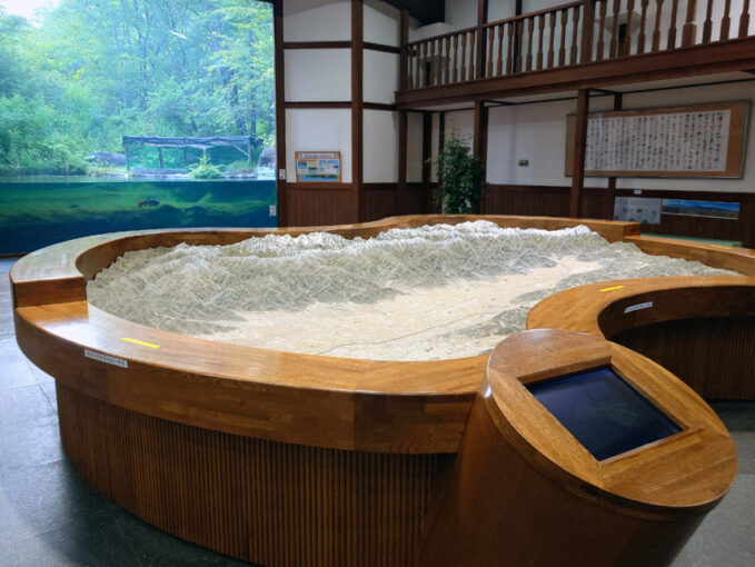 「不動産の視点で安曇野の地理を読み解く」の新コースの舞台は国営アルプスあづみの公園。開園前にあづみの学校のジオラマで安曇野の地形を知り、公園内の分水跡や石切り跡、古墳等を訪ねます。
